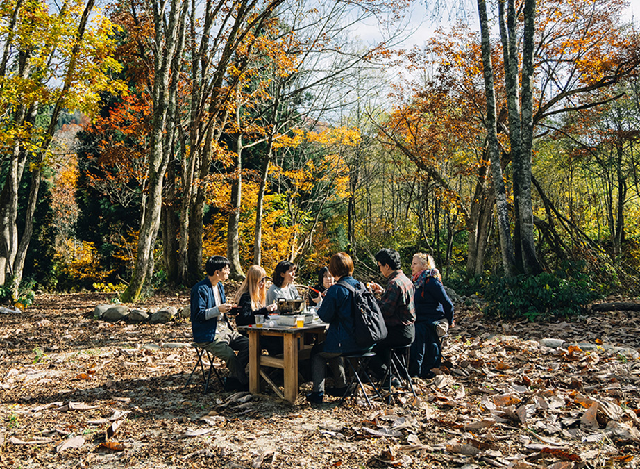開放的な森の中で昼食