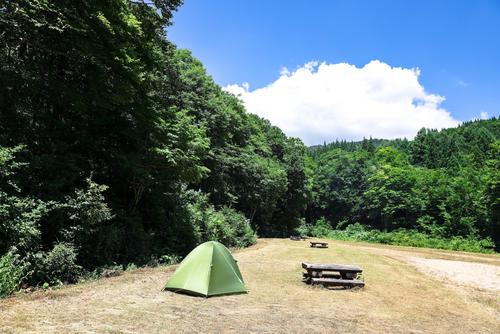 まわりをブナ林に囲まれた静かなキャンプ場です。炊事場やトイレなど最低限必要な設備はありますが、入浴は近くの月山志津温泉などをご利用いただけます。