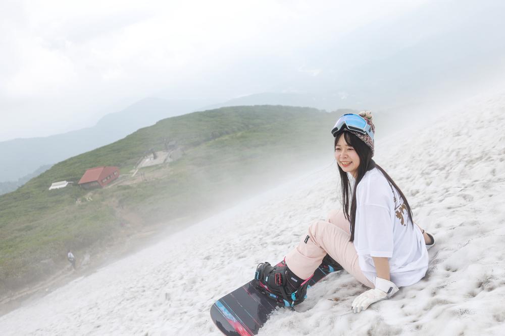 他のスキー場がクローズしていく4月にオープンする月山スキー場は7月まで滑走可能。