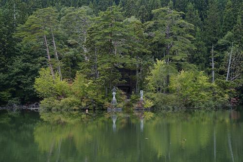 長沼湖畔に拝殿・本殿が、中之島に奥の院が鎮座するという、 とても珍しい建立方法の神社です。エメラルドグリーンの 水面に映る奥の院の光景は神秘的。