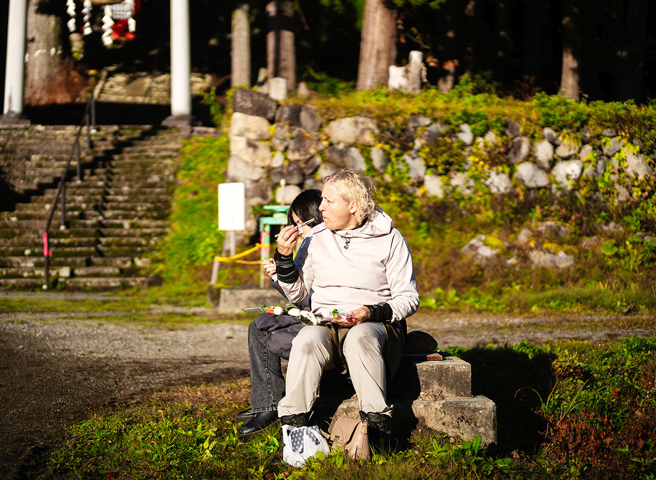 開放的な森の中で昼食