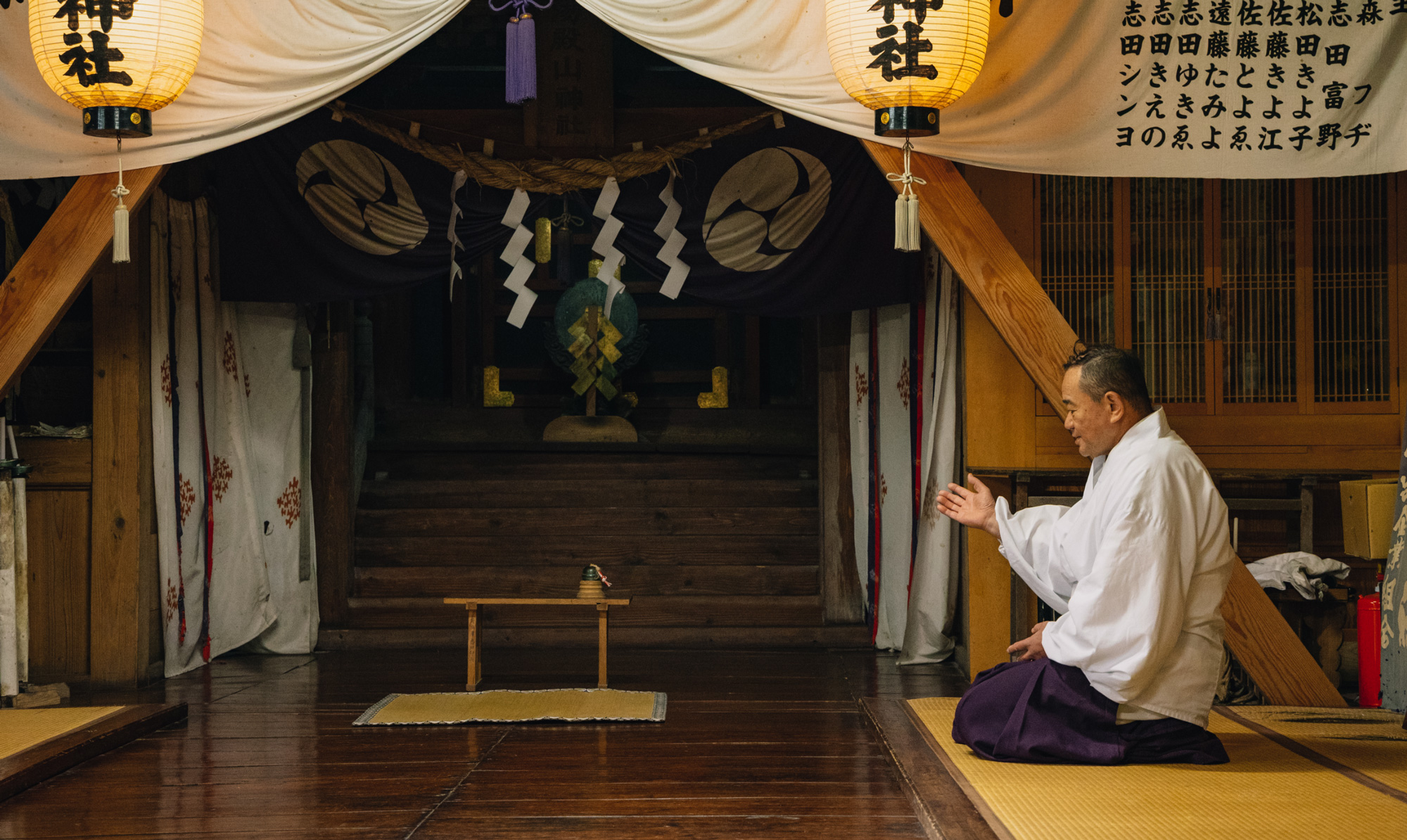 現在、湯殿山神社を預かる志田菊宏さんは、世襲ではなく地域からの要請に応じ、1996年に宮司に就任しました。「昔はあまりやりたくなかった」と笑う菊宏さんですが、以来30年にわたり神社の祭事と境内の管理を担ってきました。日々の務めは朝拝、境内の清掃、祝詞の奏上など。正月や例祭前日には護摩祈祷も行い、使用する護摩木は自ら木を割り、乾燥させたものを用います。木地玩具職人として「菊麿呂こけし」づくりを継承する手仕事の精神が、神事の一つひとつにも息づいています。清掃を最も大切にしているという菊宏さんは「境内を整え、清らかに保つことが地域への信頼にもつながる」と語ります。その姿勢は、確かな祈りの力となり、人々の生活や心を静かに支えています。